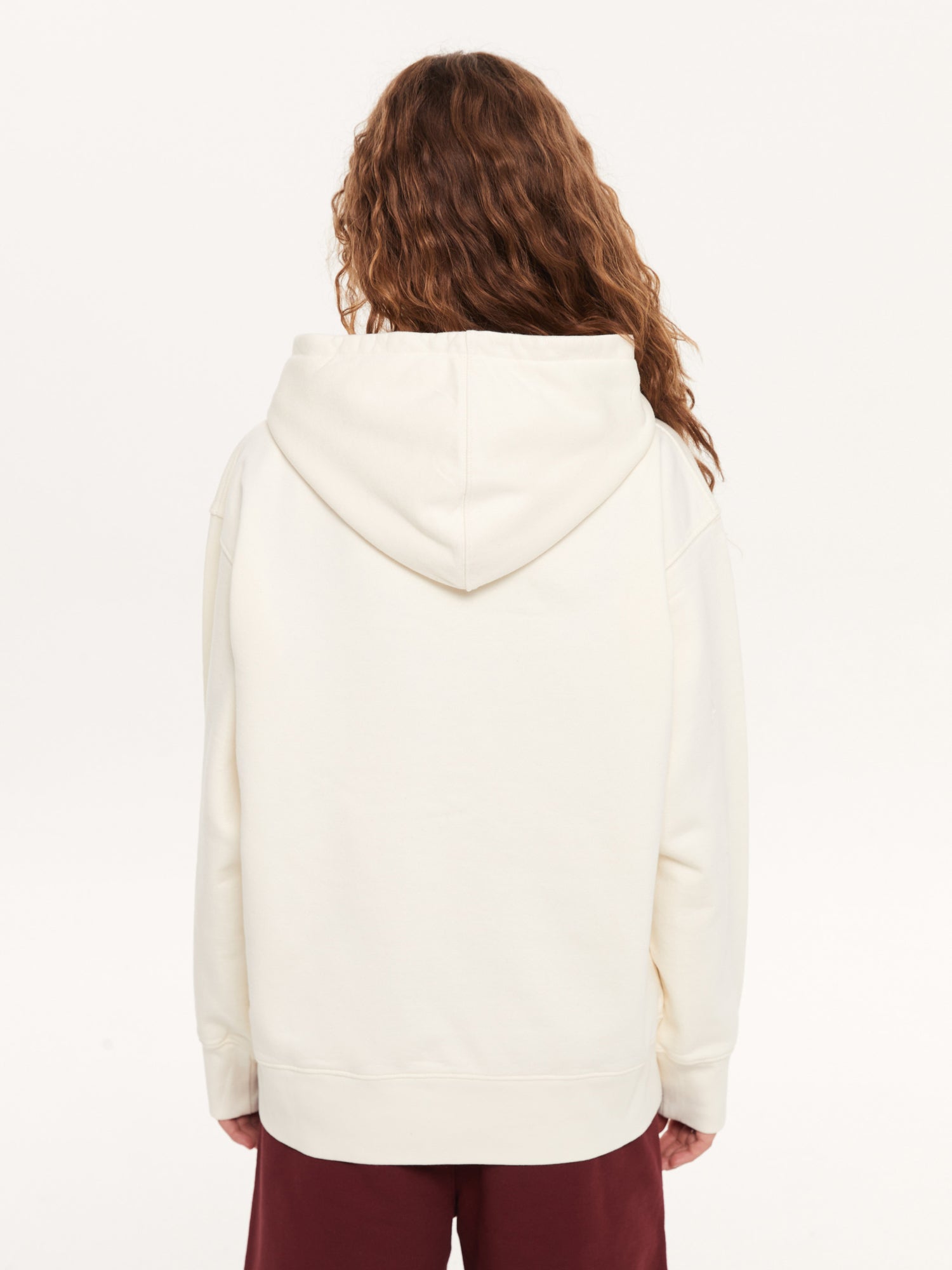 This off-white hoodie from the Space Collection adds a touch of elegance to your daily style while keeping it simple. With its comfortable fit, it's a versatile piece you can wear anywhere. Ideal for extra warmth on colder days, combine it with sneakers for a cool, effortless look.