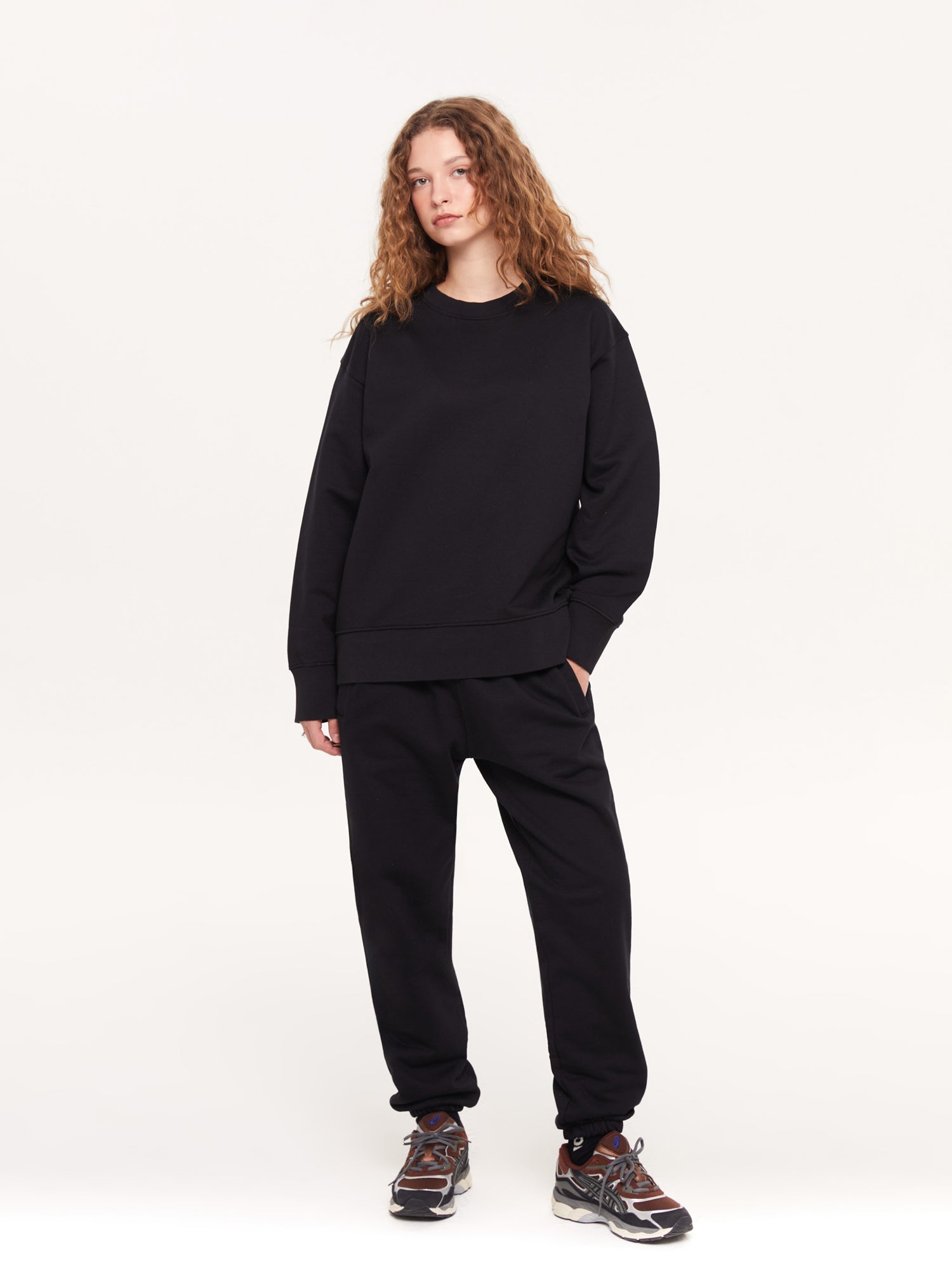 This black sweatshirt from the Space Collection is set to become a go-to piece in your wardrobe! With its minimalist design and comfortable fit, it complements any outfit. Pair it with your favorite sweatpants or jeans for an effortlessly cool touch to your daily style.