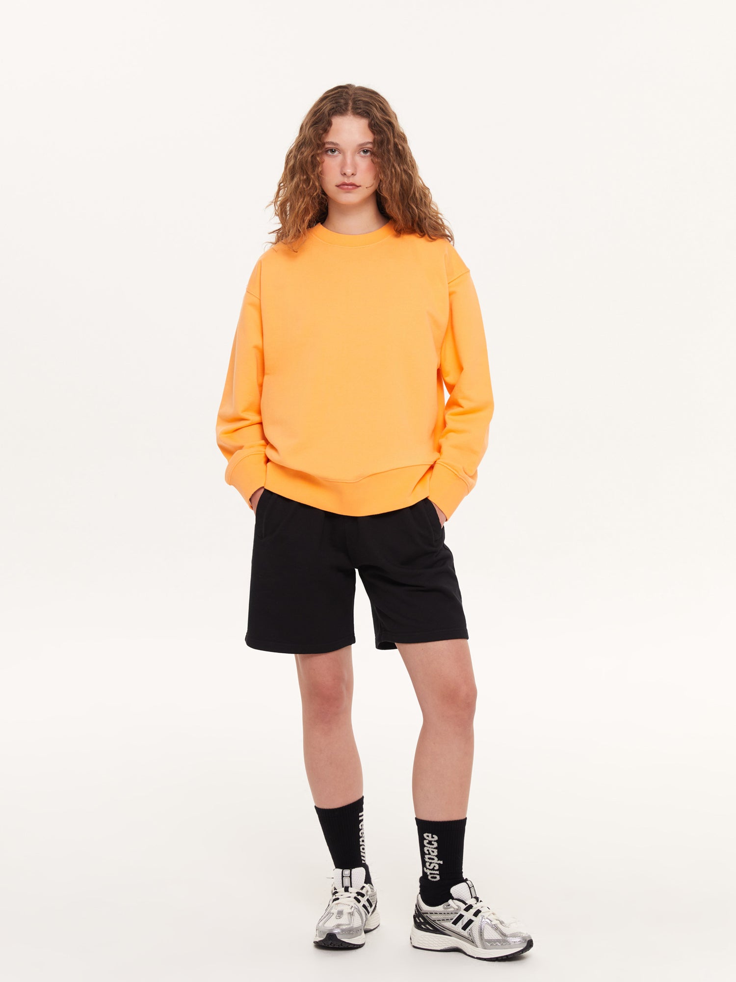 This vibrant orange sweatshirt from the Space Collection is perfect for adding energy to chilly days! Its minimalist cut complements any outfit, while the warm color adds a dynamic touch to your style. Pair it with black jeans or relaxed-fit pants to bring energy to your everyday life!