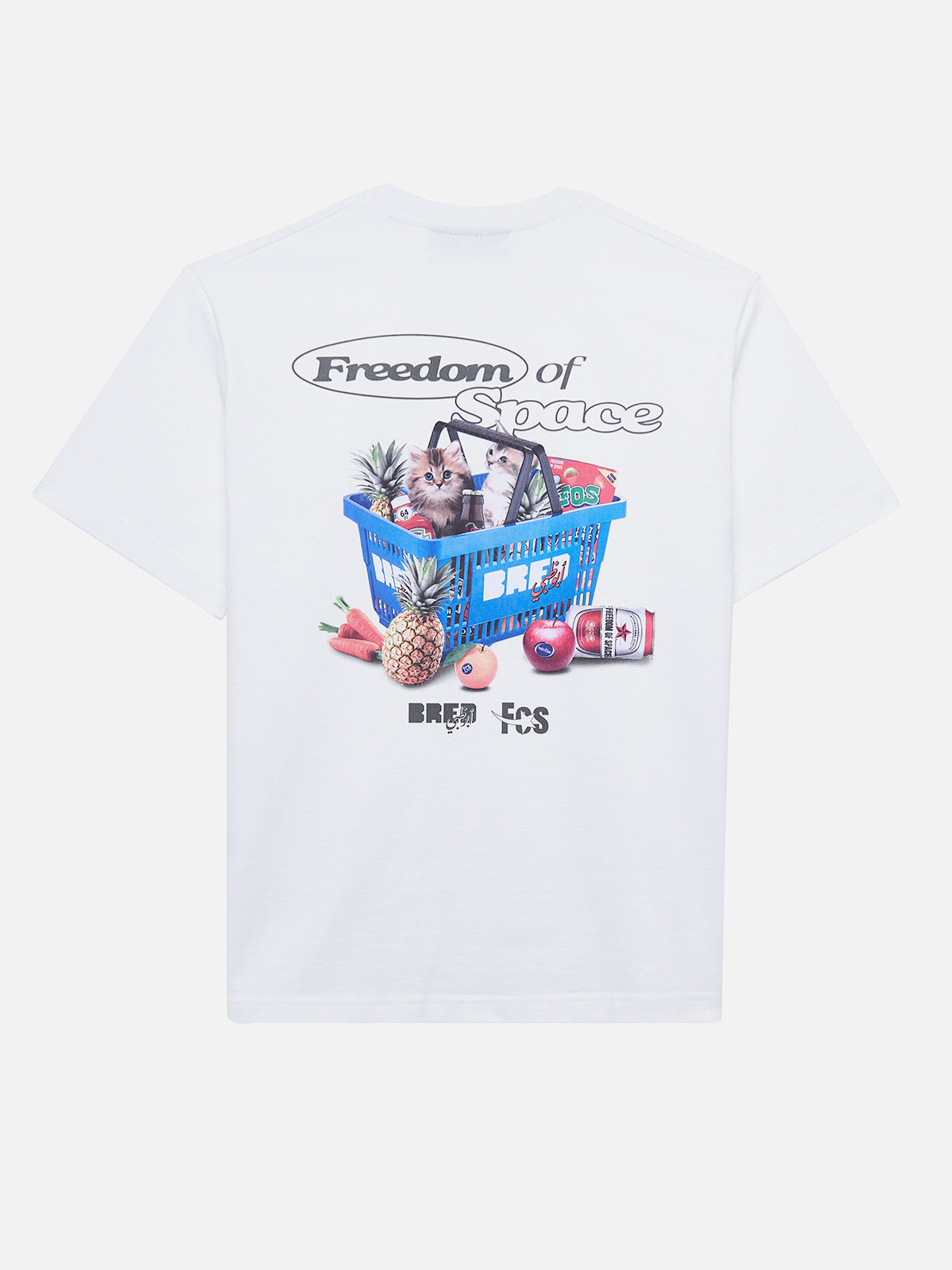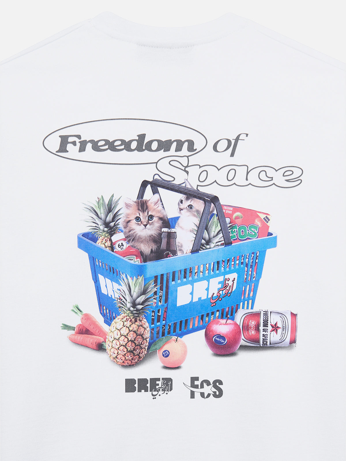 Why go grocery shopping when you can wear the whole cart on your back? Featuring two highly suspicious kittens, a balanced diet of beer and fruit, and enough style to get you kicked out of your local supermarket (for being too fresh).