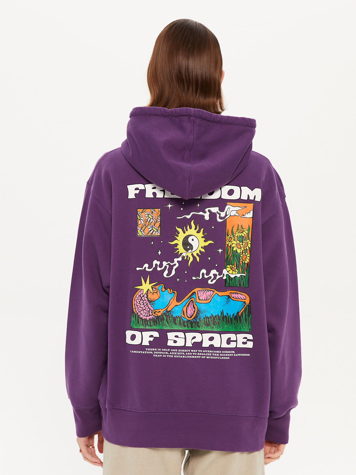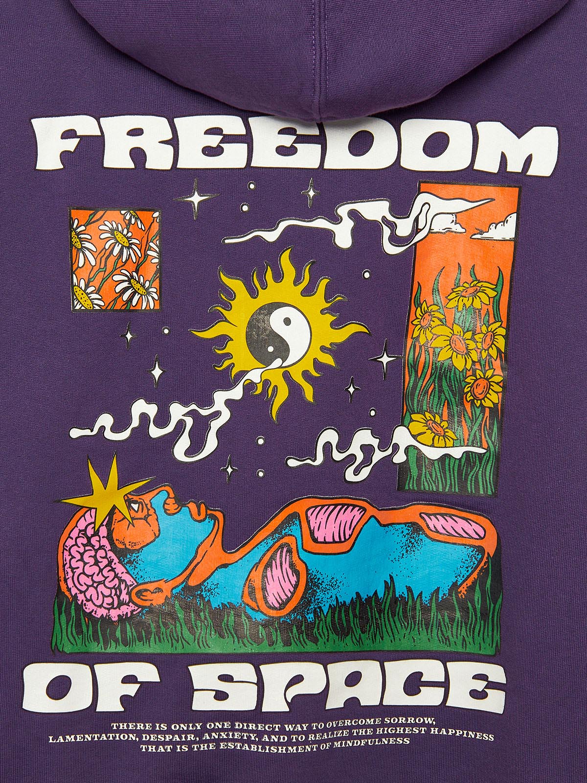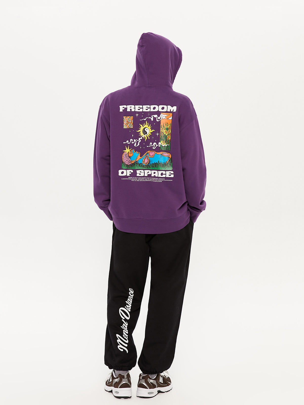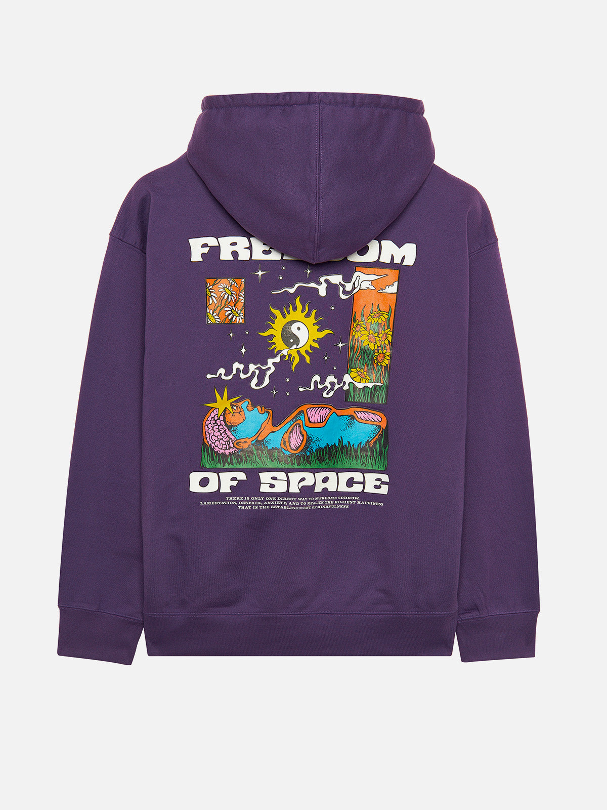 Purple hoodie with multi color big hit back and white small hit front