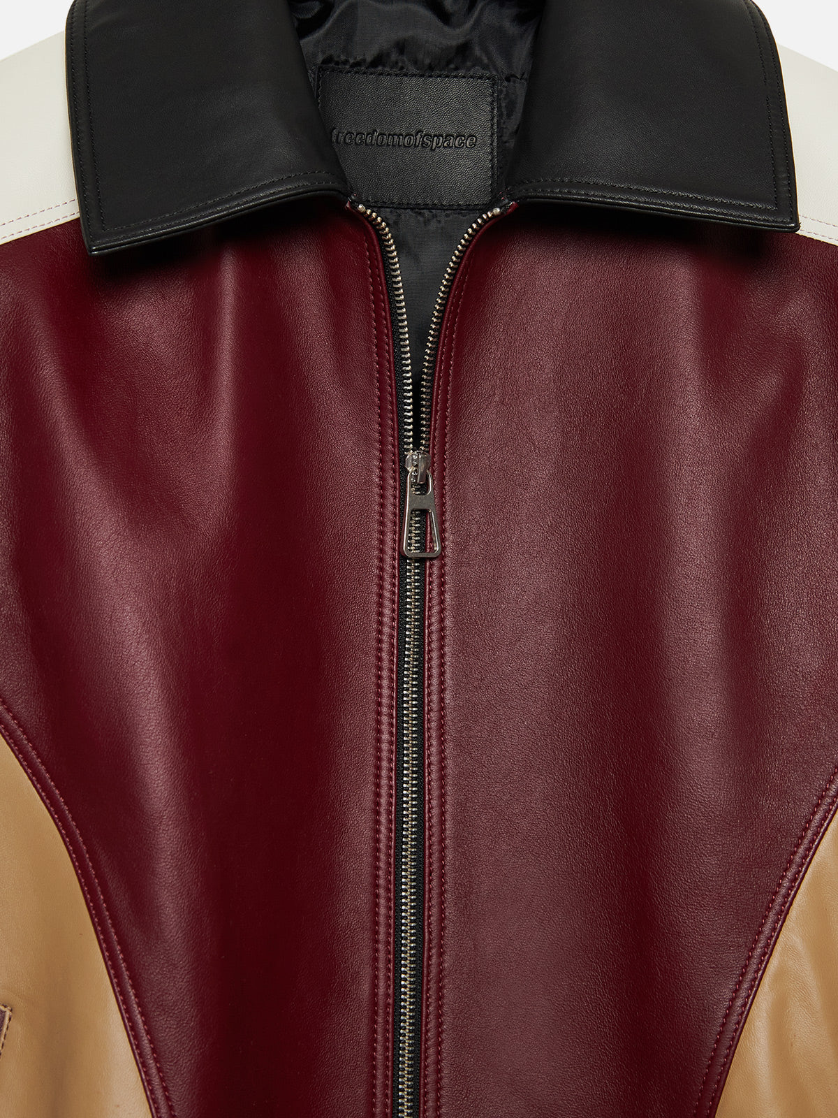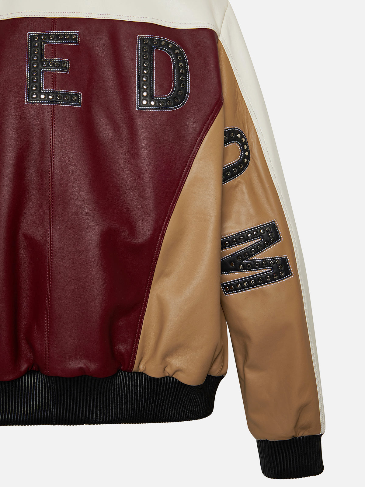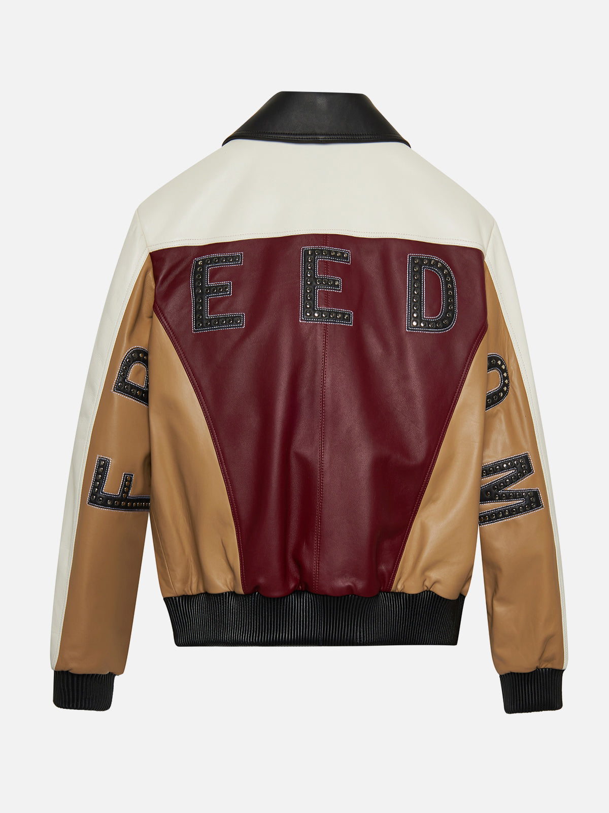 With bold studs spelling “FREEDOM” across the back and sleeves, this jacket is thinking out loud — literally.