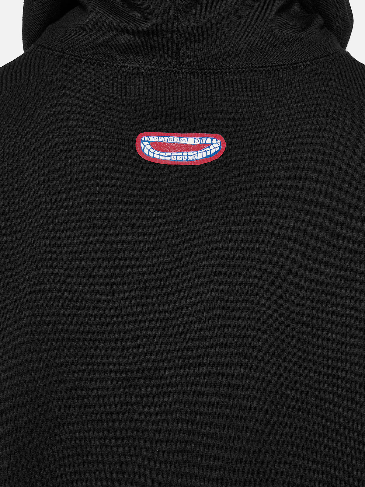 Black hoodie with multi color big hit back and white small hit front